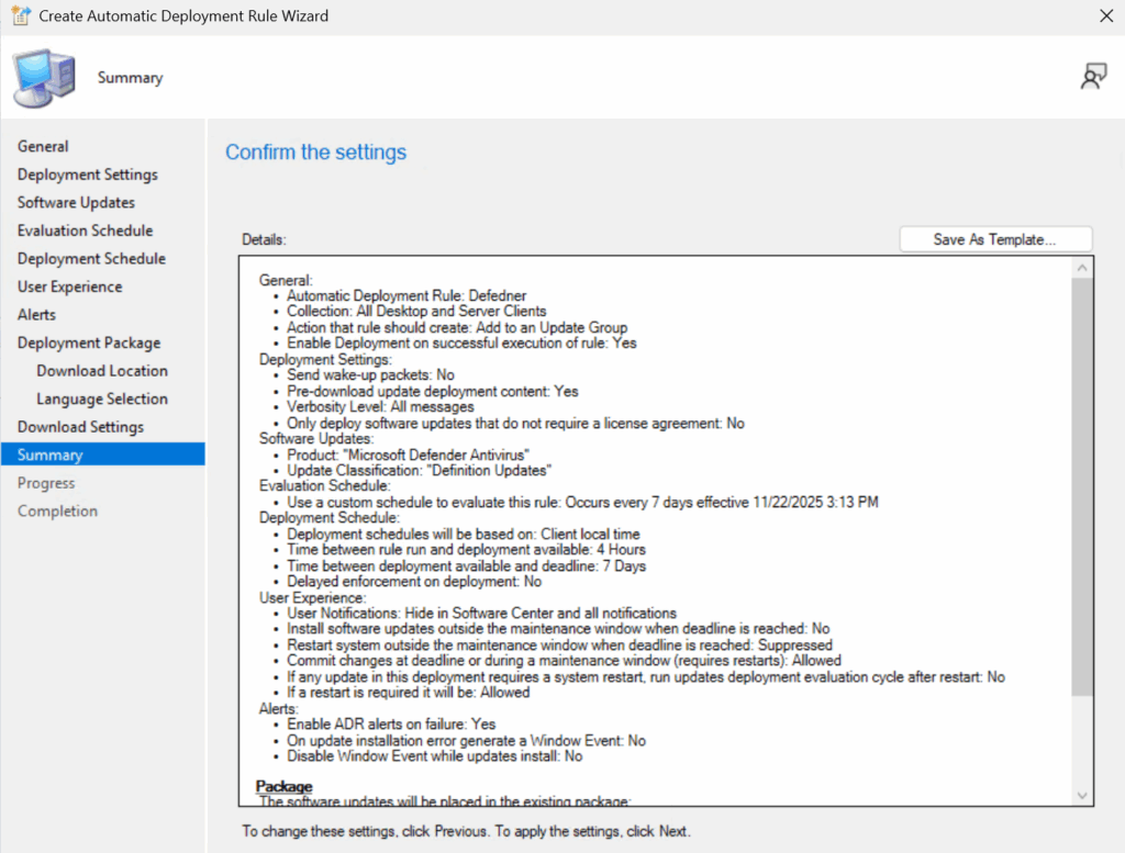 - tworzy Deployment Package i wysyła ją na wskazane w kreatorze Distribution Point.