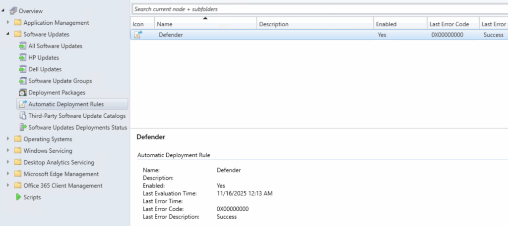 Reguły Automatic Deployment Rules można obejrzeć na zakładce Software Library\Overview\Software Updates\Automatic Deployment Rules.