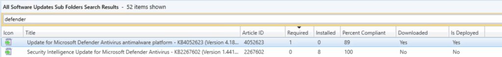 Na koniec sprawdzamy czy przy objętych regułą aktualizacji jest Downloaded oraz is Deployded ustawione na Yes.