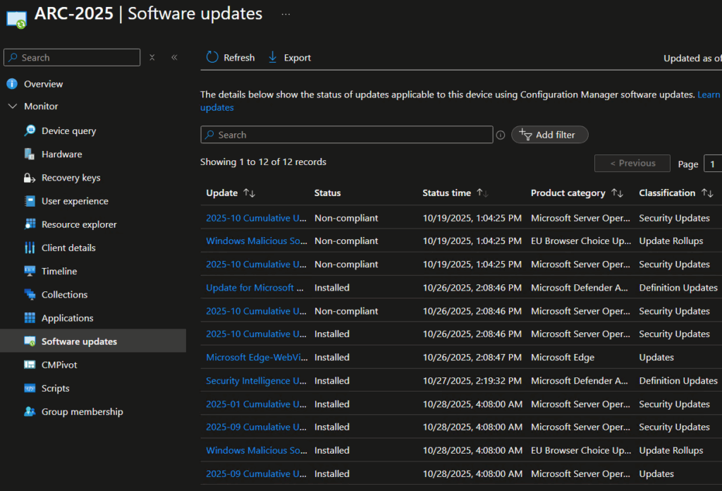 Możemy również przeglądać dane pochodzące bezpośrednio z serwera ConfigMgr.