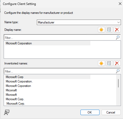 Domyślnie system normalizuje nazwy powiązane tylko z Microsoft Corporation.