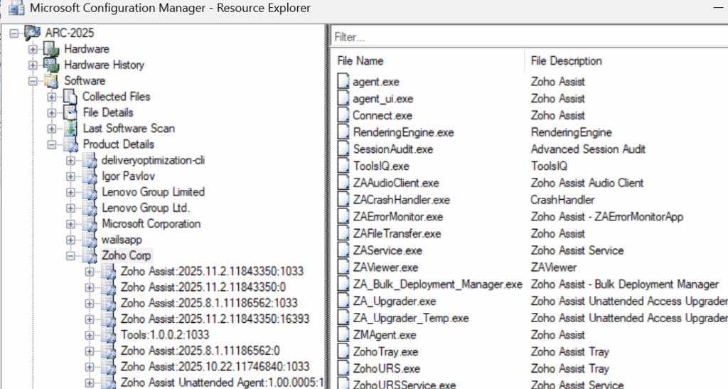 Poniżej przykład jak bez reguły zostały wyświetlone informacje o oprogramowaniu firmy Zoho Corp. Jak widać są trzy wpisy dotyczące tego samego produktu i producenta.