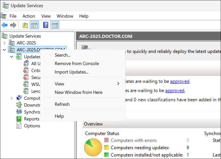 W poprzednich wersjach serwera WSUS, informacje o aktualizacjach mogłem importować używając jego konsoli. Na serwerze WSUS, w wersji 4.0, ta opcja jest nadal dostępna na konsoli, natomiast proces importowania jest wykonywany przez administratora przy pomocy poleceń powershell.