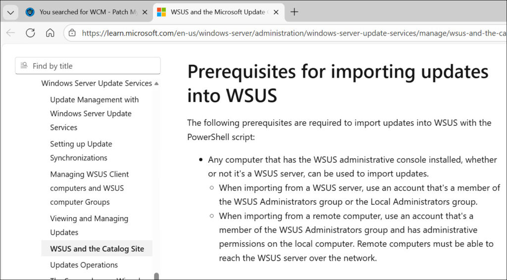 Po uruchomieniu importowania aktualizacji, zostałem przekierowany na stronę MS opisującą proces importu przy pomocy poleceń powershell.