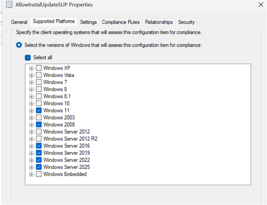 Zaznaczam aktualizację dla danej platformy, którą obsługuje serwer WSUS.